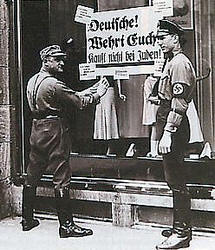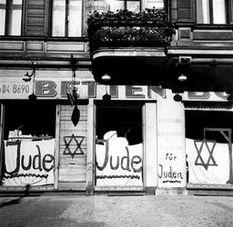 Au soir du 9 novembre 1938, -début de la nuit de cristal (kristallnacht en allemand, en référence aux milliers de vitrines et fenêtres brisées) la colère populaire spontanée invoquée par les responsables nazis, investie les rues des grands villes allemandes semant sur leur passage, ruine et désolation. L'orchestration du carnage a été soigneusement planifiée et l'on peut voir dès 22 heures, les chefs régionaux de la SA, galvanisés par Goebbels, donner par téléphone les ordres à leurs troupes -beaucoup seront habillés en civil afin de masquer la manipulation- qui vont généraliser les interventions, allumant incendies, détruisant les magasins, -l'identification est aisée car une ordonnance a exigé que le nom du propriétaire soit peint sur la vitrine en grandes lettres- tuant ou violentant au coeur de cette nuit sinistre qui augurait l'ère des persécutions futures.